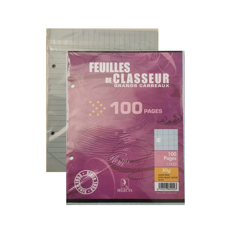 FEUILLES DE CLASSEUR 100 PAGES